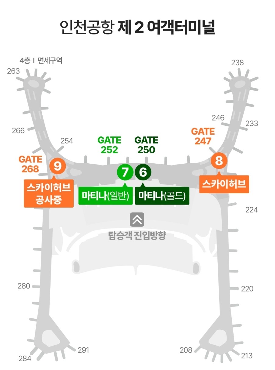 - 위치: 제2터미널 4층 면세지역 252번 게이트 앞