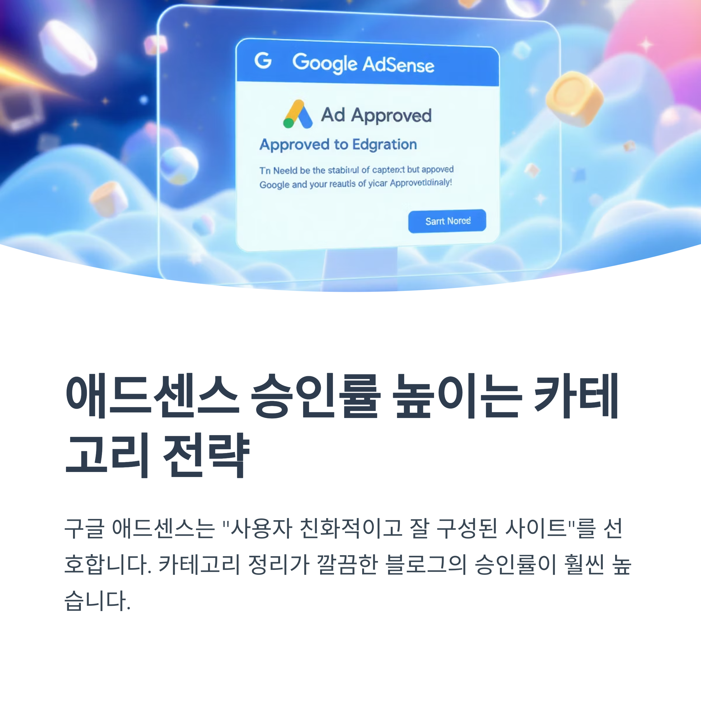 - 애드센스 심사 통과: 구글 애드센스는 "사용자 친화적이고 잘 구성된 사이트"를 선호합니다. 깔끔하고 논리적인 카테고리 구조는 구글 심사관에게 블로그가 체계적으로 관리되고 있음을 보여주며, 승인 가능성을 높입니다. 실제 무작정 글만 올리는 블로그보다, 카테고리 정리가 깔끔한 블로그의 승인률이 훨씬 높습니다.