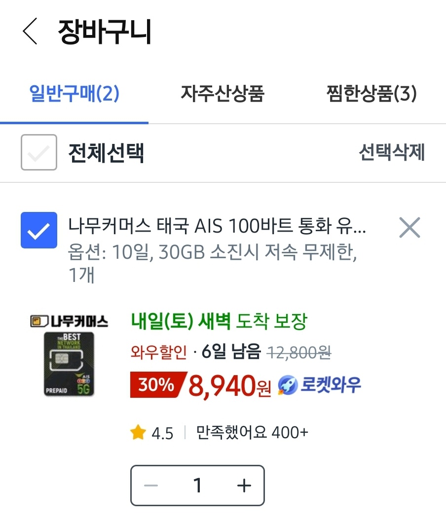이번에 저는 쿠팡에서 30GB짜리 태국 유심을 8,950원에 구매했어요.