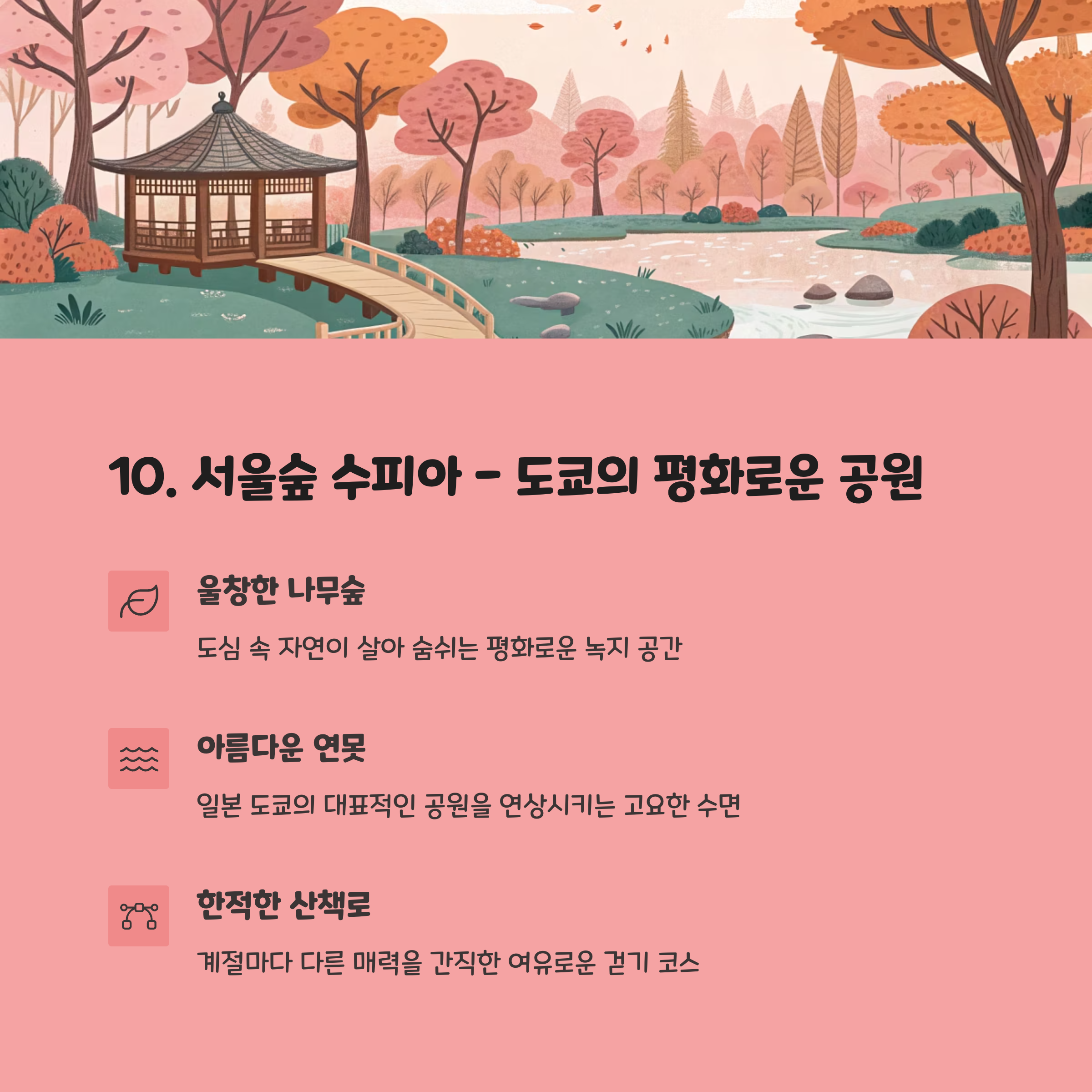 10. 서울 서울숲 수피아 – 도쿄 공원 감성