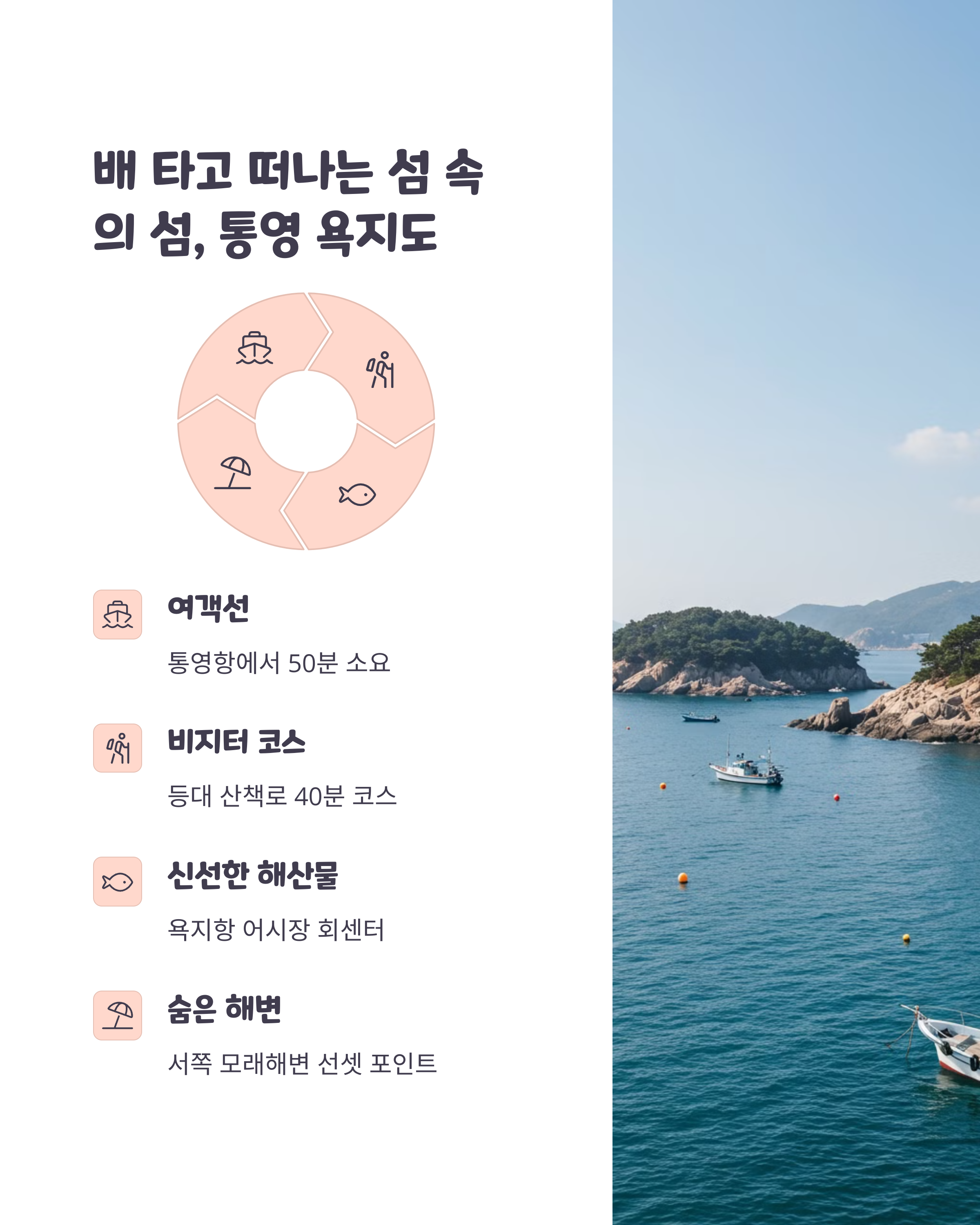 통영까지는 많이들 가시죠? 그런데 진짜 보물은 그 바다 너머 욕지도에 있어요. 작은 배를 타고 들어가야 만날 수 있는 섬 속의 섬, 그 고요함은 말로 표현이 안 될 정도에요.
