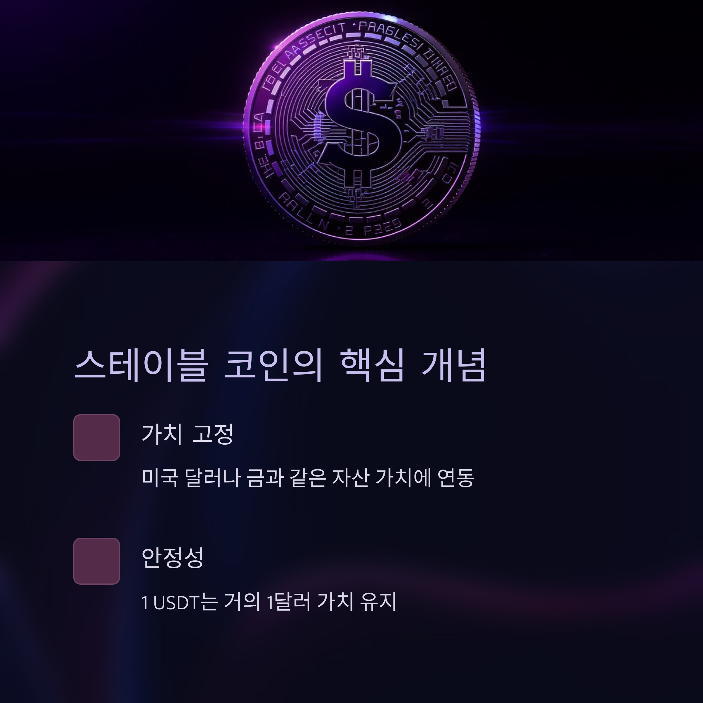 핵심 개념: 스테이블 코인은 미국 달러, 유로와 같은 법정화폐, 또는 금과 같은 실물 자산의 가치를 추종하도록 설계되었습니다. 예를 들어, 1 USDT(테더)는 거의 1달러의 가치를 유지하는 식입니다. 이는 가상자산 시장의 변동성으로부터 투자자를 보호하고, 실생활에서 결제 수단으로 활용될 수 있는 가능성을 높여줍니다.