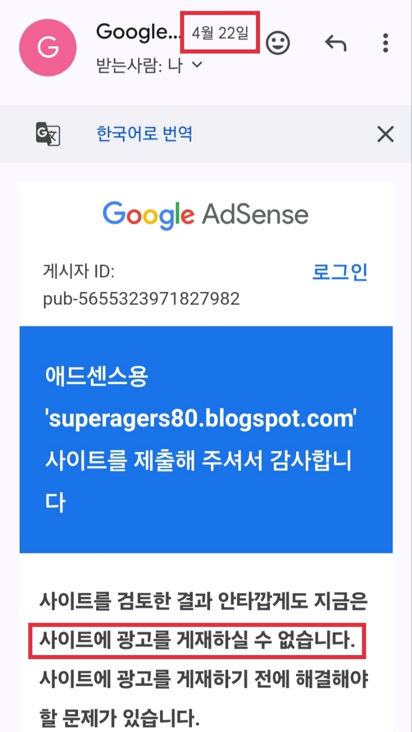 다시 10개 정도 글을 추가하고 또 승인 요청을 하고 반달쯤 기다리면 거절,