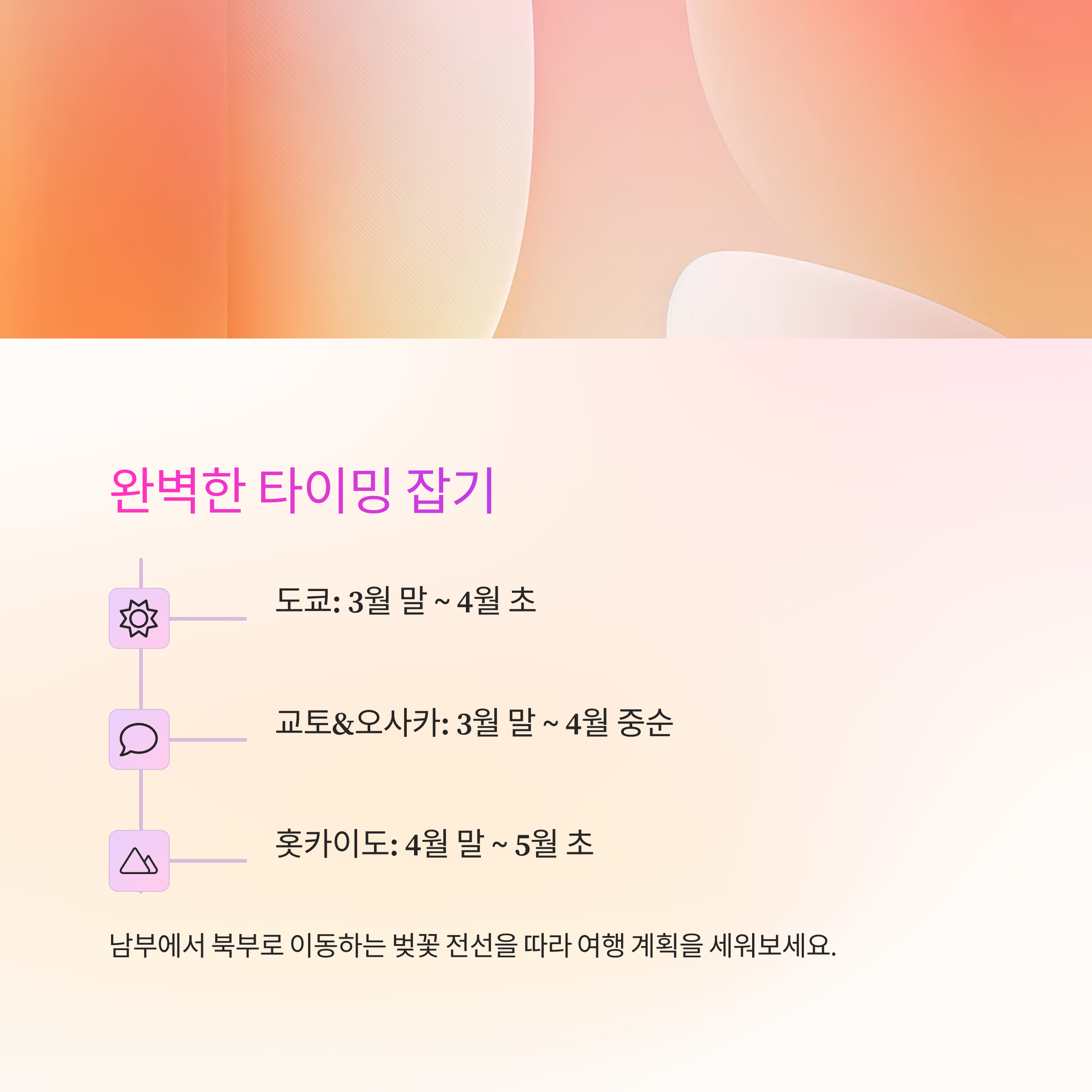 정리하자면, 일본 벚꽃 여행의 최적기는 3월 말부터 4월 중순까지, 여행지는 날씨 예보와 개화 예상 시기에 맞춰 유동적으로 선택하는 것이 가장 스마트한 방법입니다.