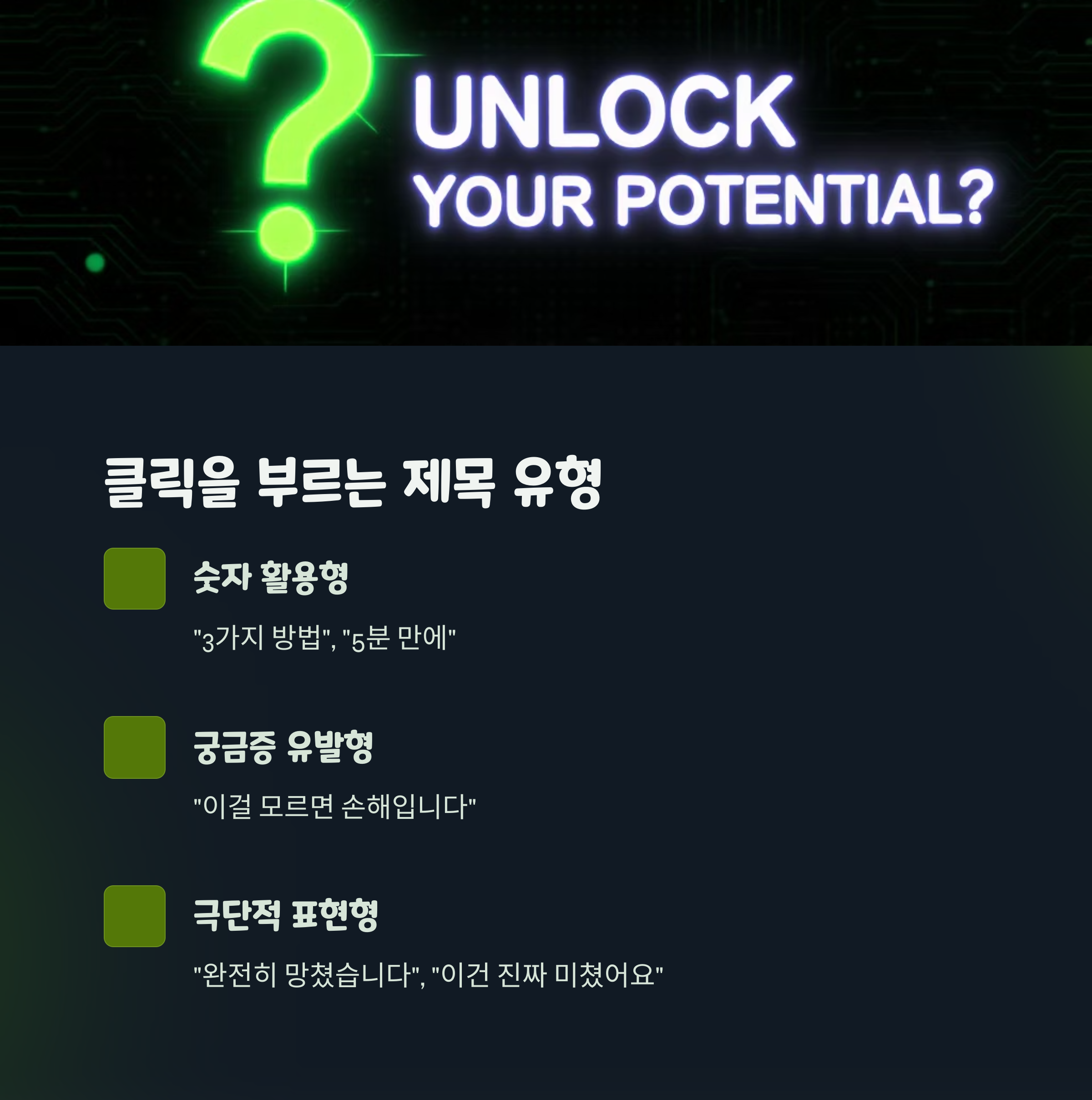 - 궁금증 유발형 (예: “이걸 모르면 손해입니다”)