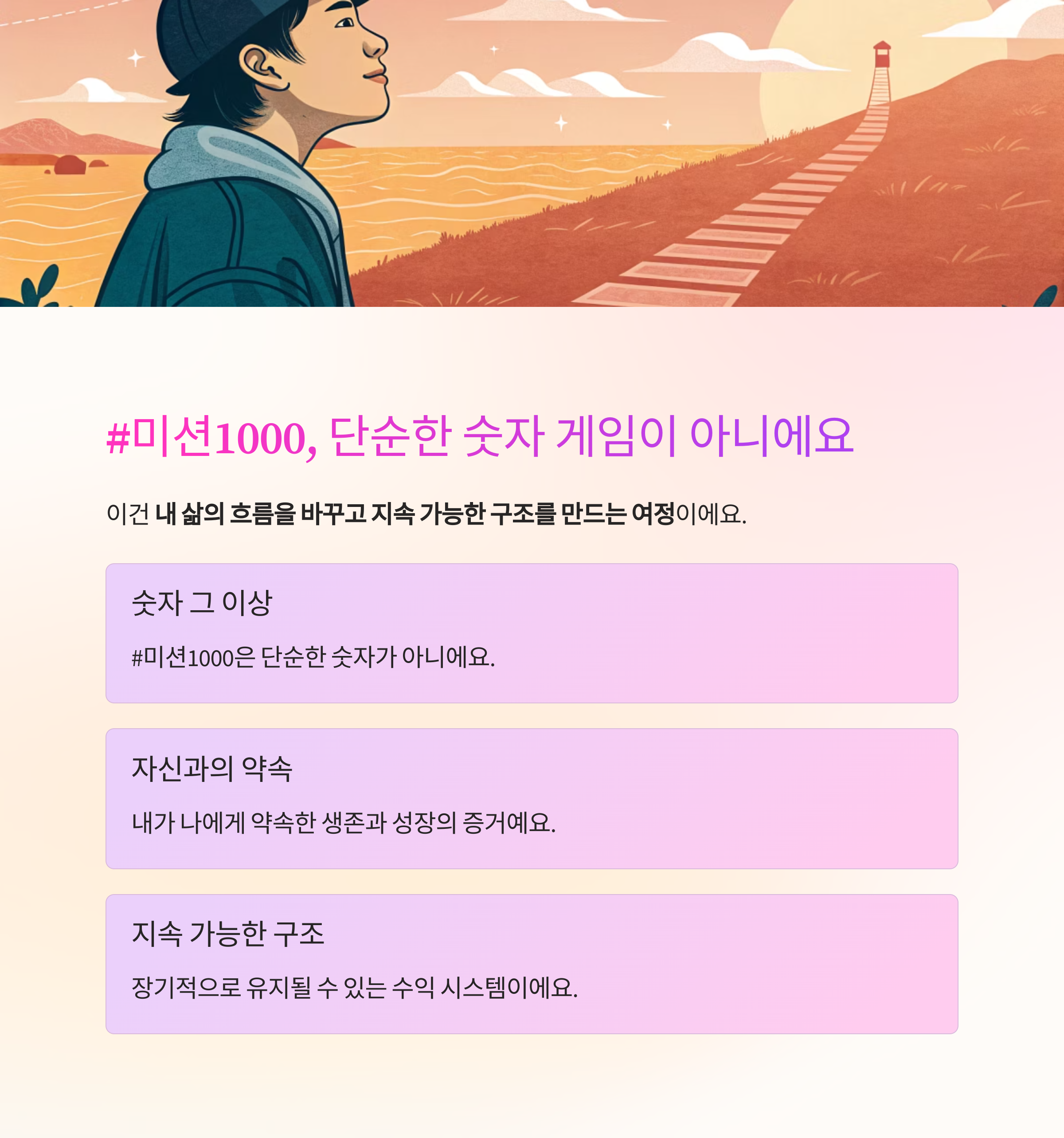 이건 내 삶의 흐름을 바꾸고 지속 가능한 구조를 만드는 여정이에요. #미션1000, 그건 숫자가 아니라 내가 나에게 약속한 생존과 성장의 증거입니다.