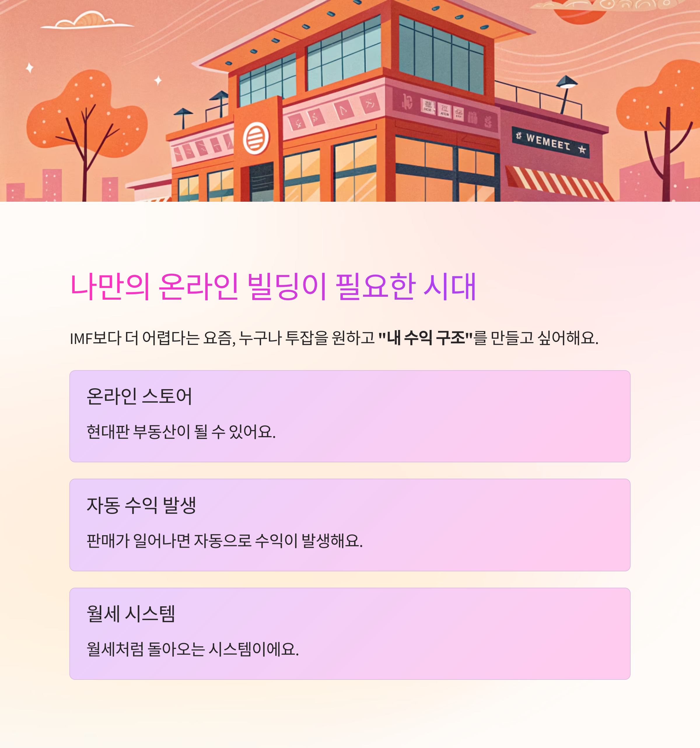 IMF보다 더 어렵다는 요즘, 누구나 투잡을 원하고, 누구나 온라인 공간에 “내 수익 구조”를 만들고 싶어해요. 온라인 스토어는 현대판 부동산이 될 수 있어요. 판매가 일어나면 자동으로 수익이 발생하고, 그건 월세처럼 돌아오는 시스템이니까요.
