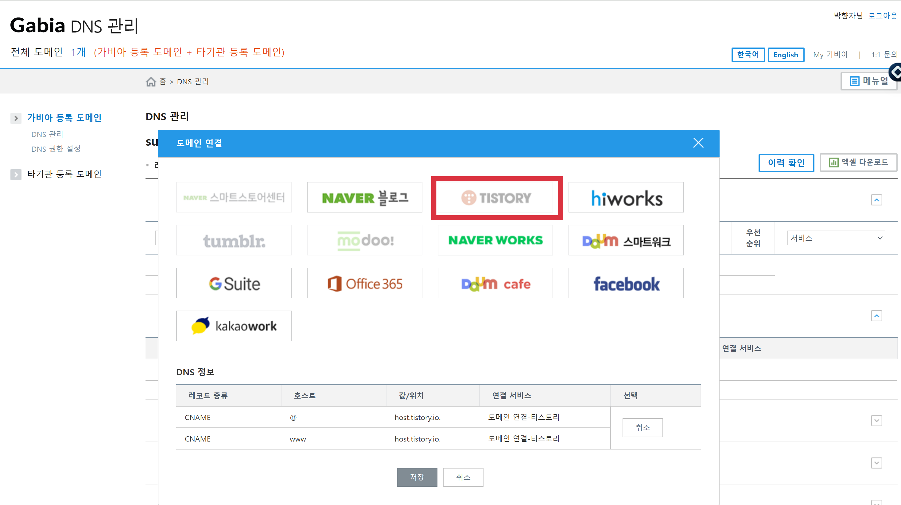 👉 DNS 설정 + 티스토리 연결