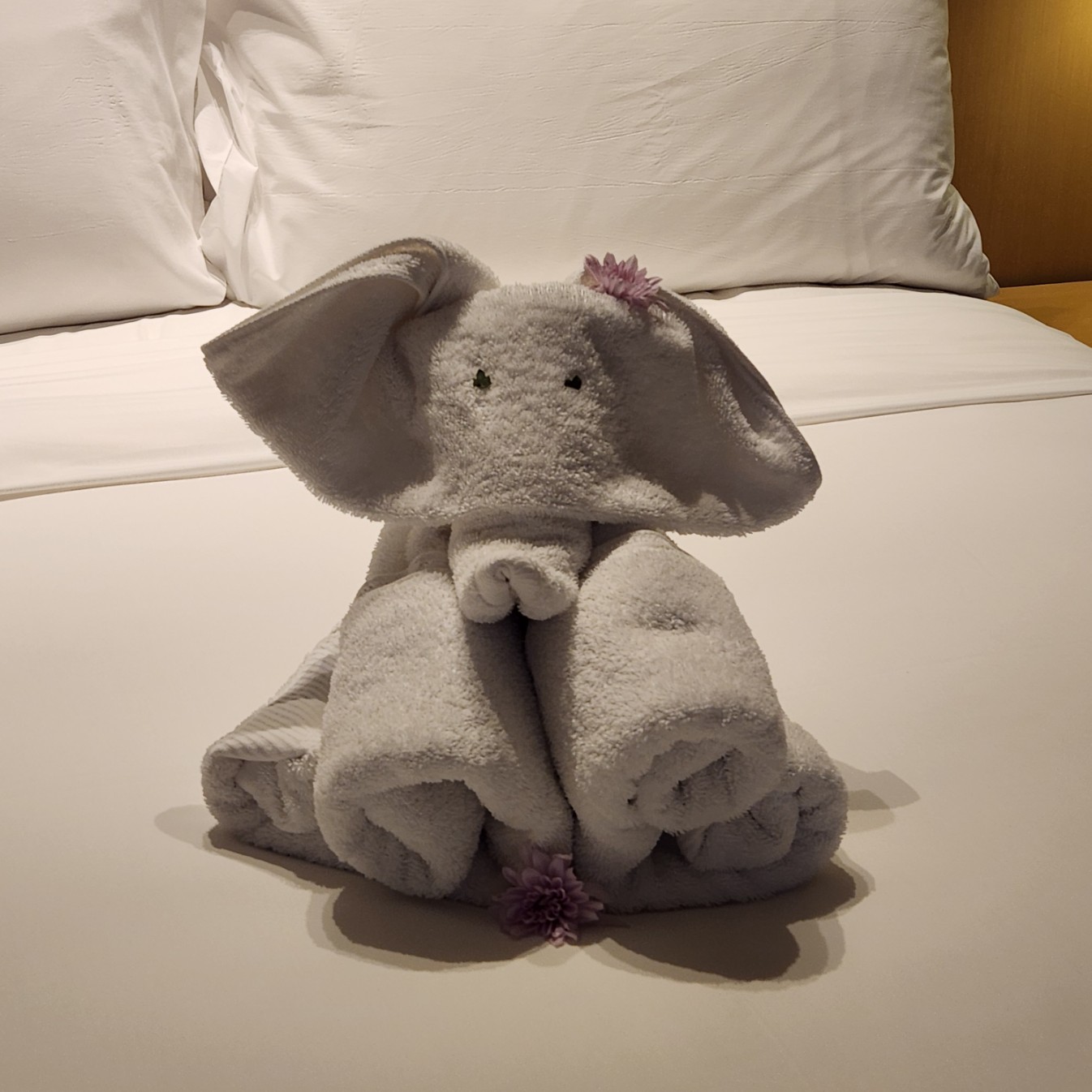 포근한 침대 위에 작은 코끼리 모양의 수건 아트가 나를 반겨주었거든요.