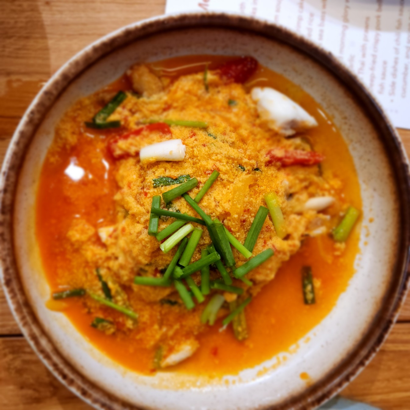 튀긴 게를 코코넛밀크와 함께 부드러운 카레 소스에 볶은 맛이 정말 매력적이에요!
