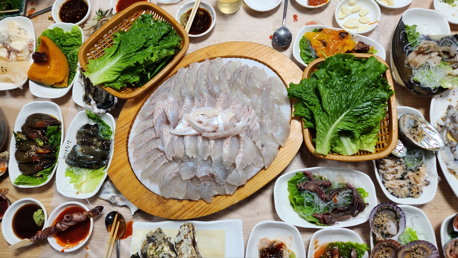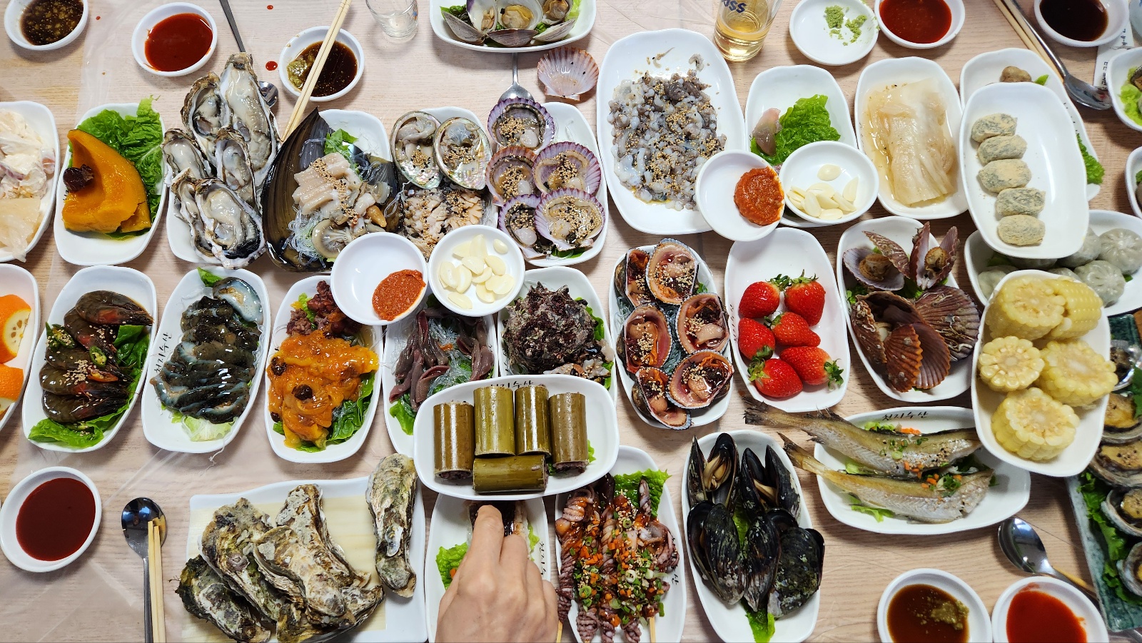 - 각종 해산물, 전, 무침, 튀김...